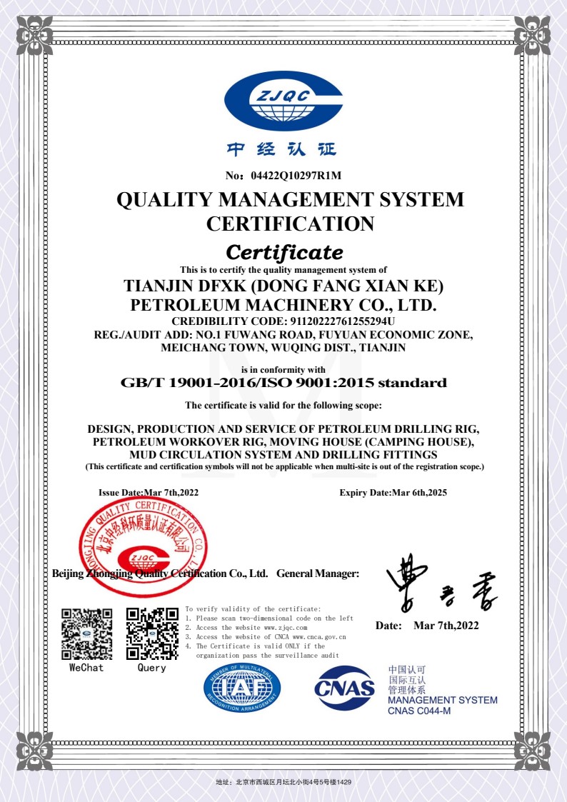 質(zhì)量管理體系認證證書英文