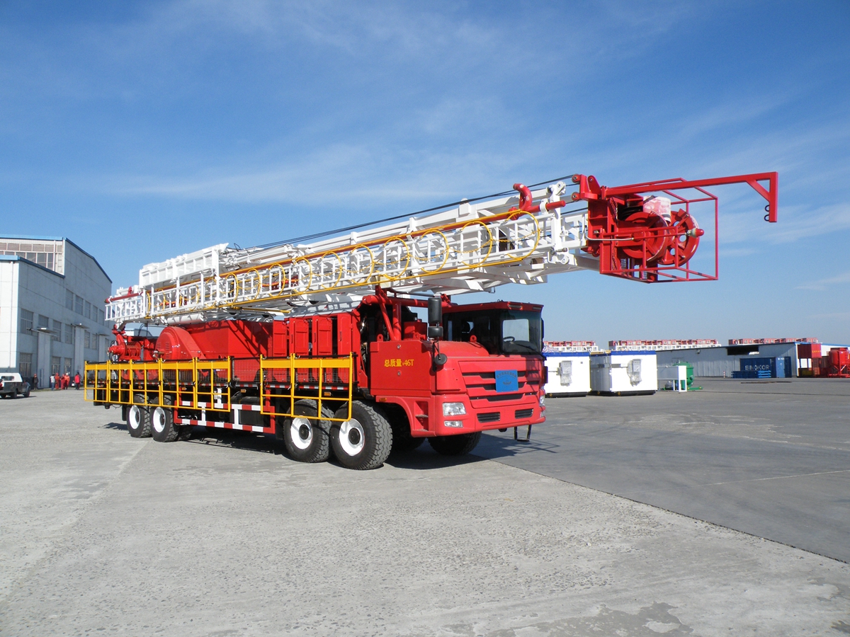 ? 井架為液壓起放及伸縮,設(shè)計(jì)制造符合API 4F規(guī)范。