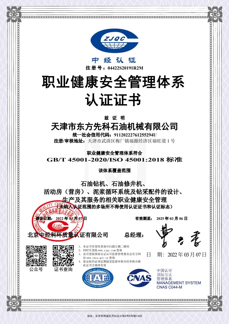 職業(yè)健康安全管理體系認證證書英文